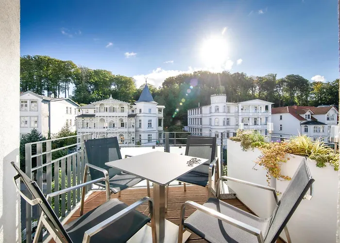 Villa Lena Ferienwohnung Lichtblick Sellin spacieux est situé à moins de 10 minutes en voiture du Château de Granitz et à 7 km d'Historic Binz museum. Pour agrémenter leur séjour, les clients peuvent profiter au maximum d'équitation et du mini-golf disponibles sur place.